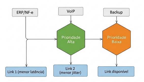 Resultado: cada fluxo segue o melhor caminho em tempo real.