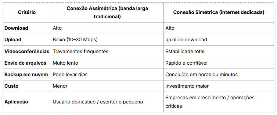 Velocidade Simétrica: Por que upload importa tanto quanto download no mundo dos negócios